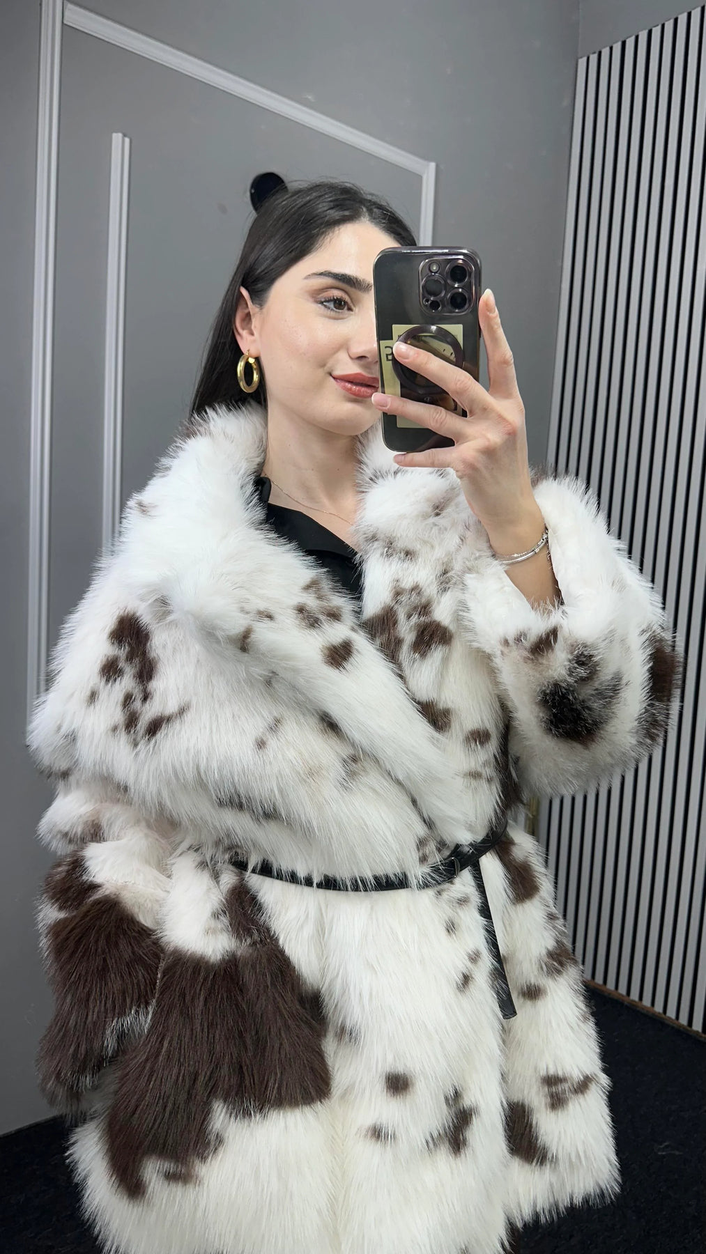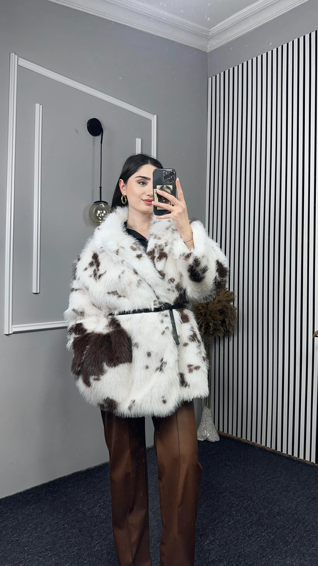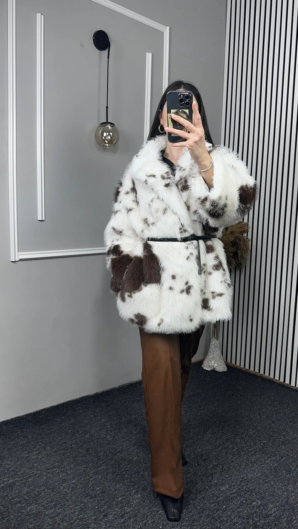 Batik Desen Kemerli Uzun Kürk