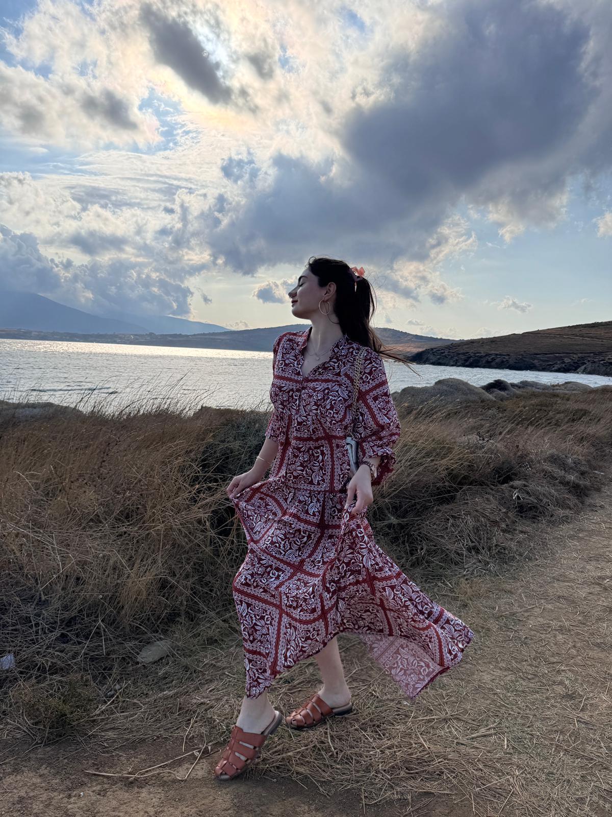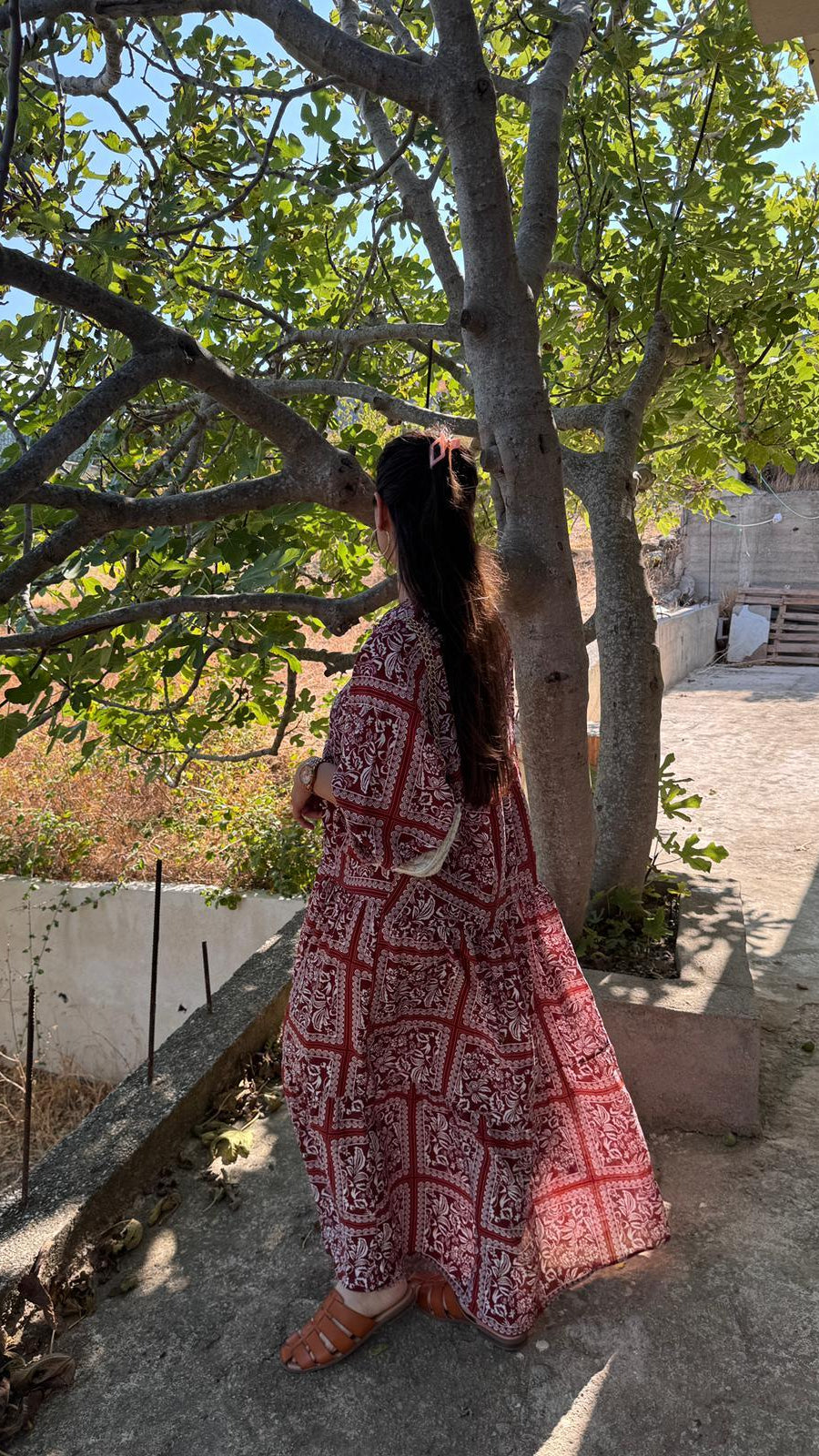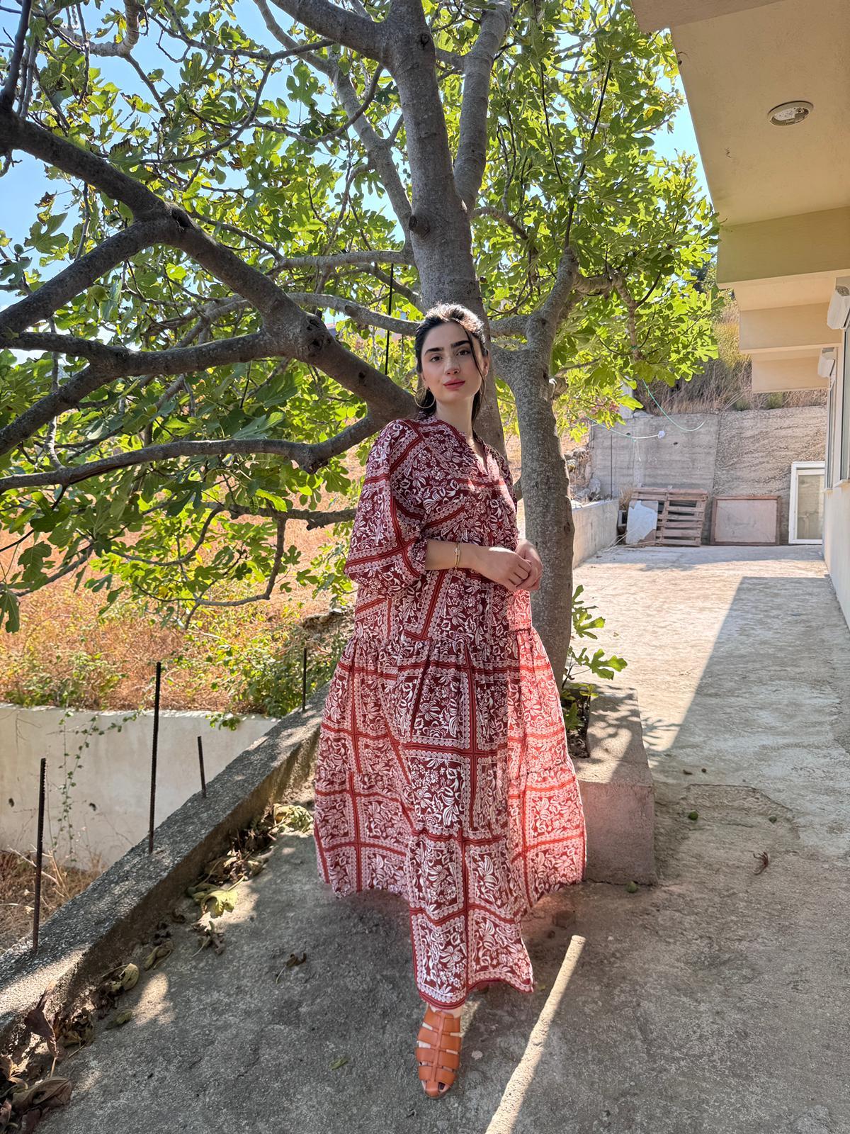 Desenli Düğmeli Çiçekli Elbise Etnik