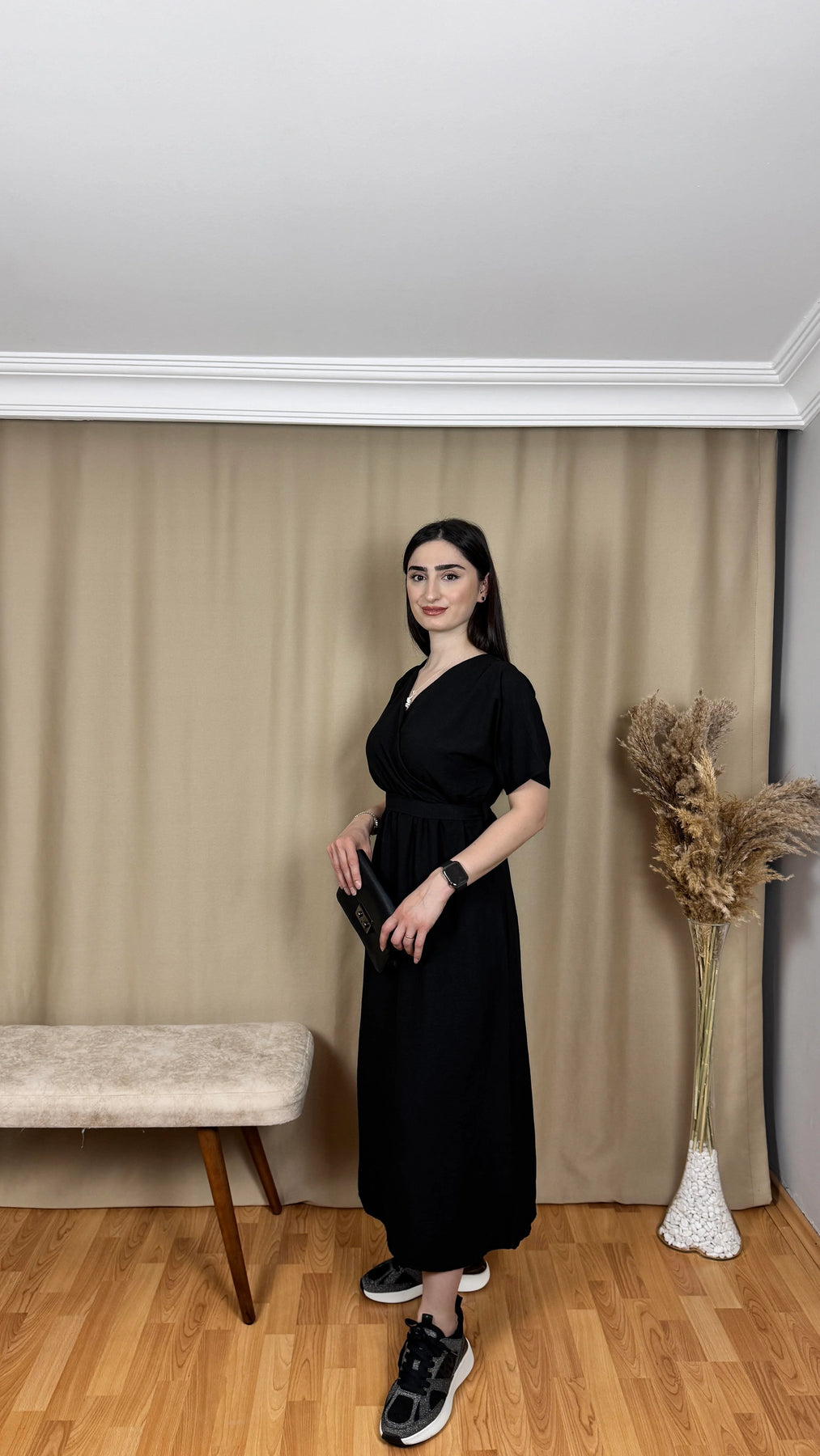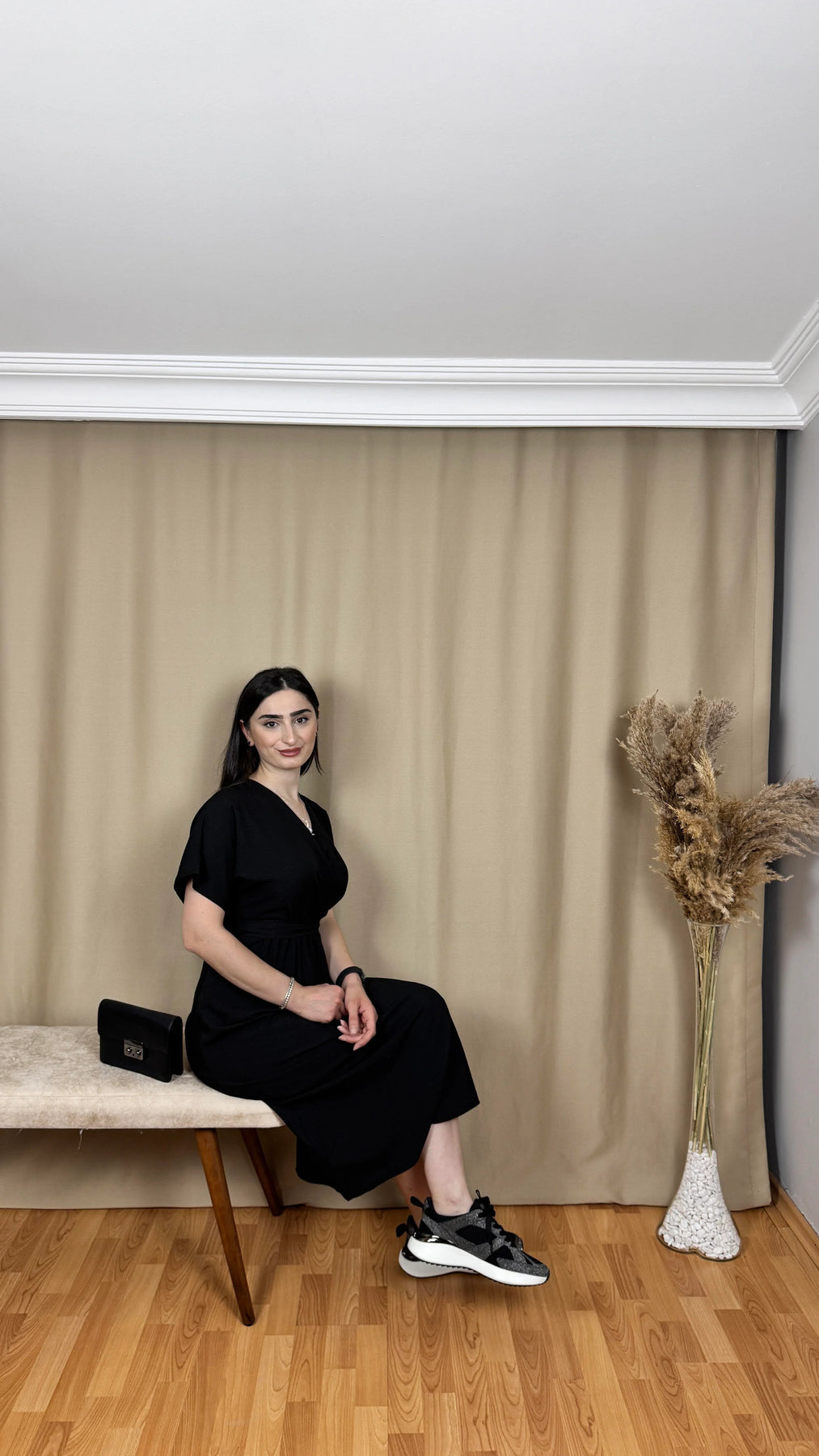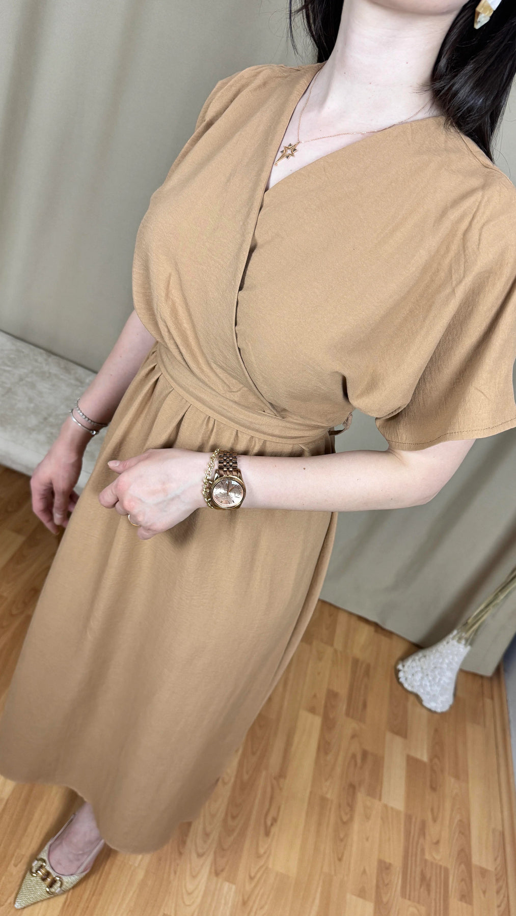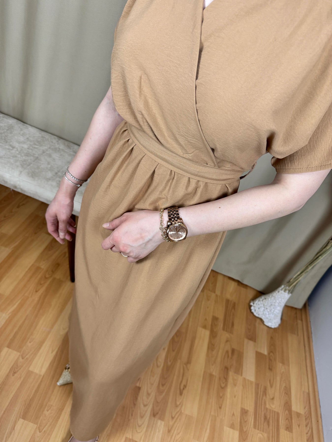 Kuşaklı Midi Boy Pamuk Keten Elbise