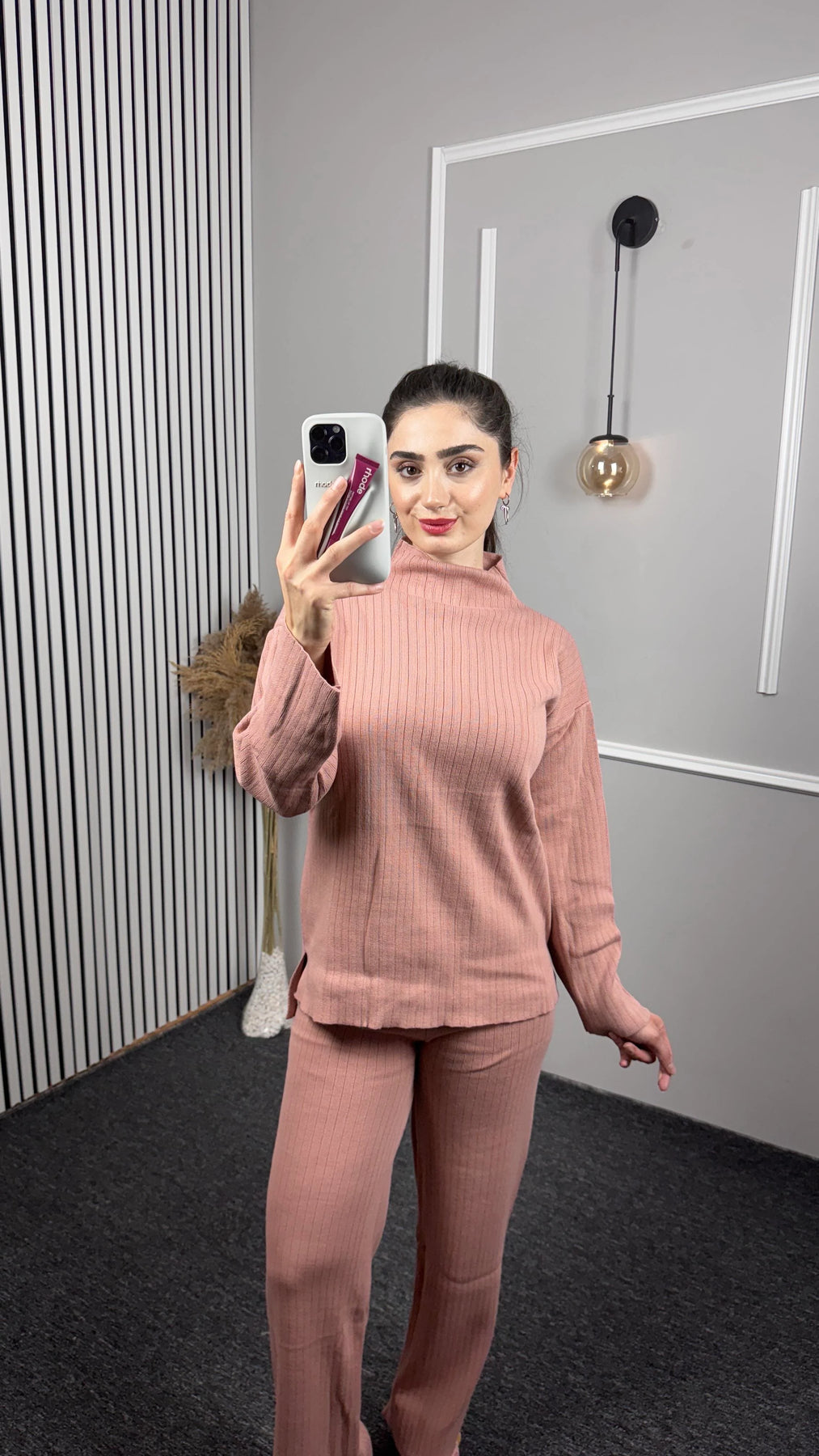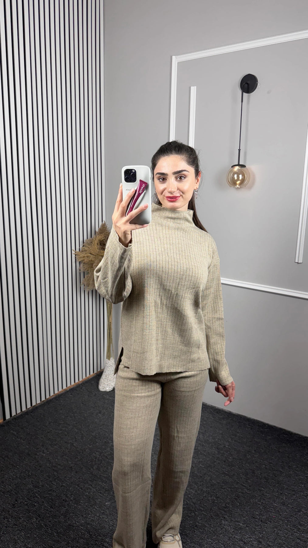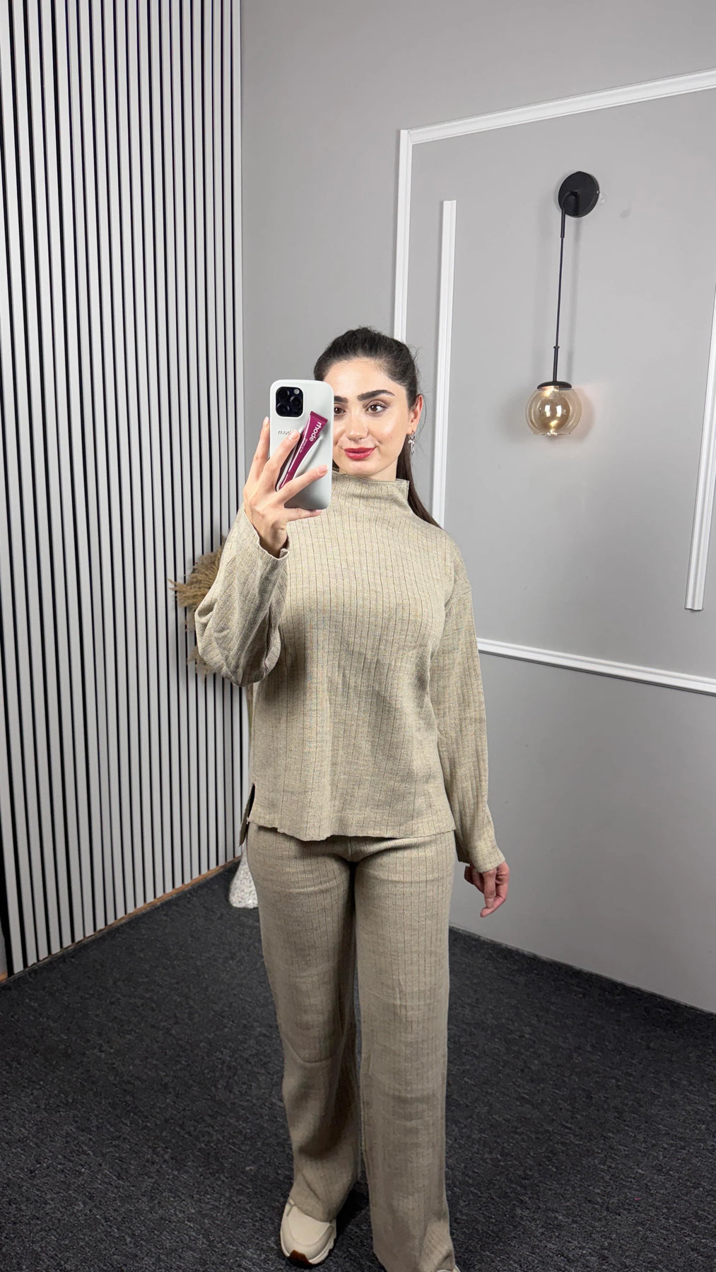 Çizgi Detaylı Uzun Kollu Triko Takım