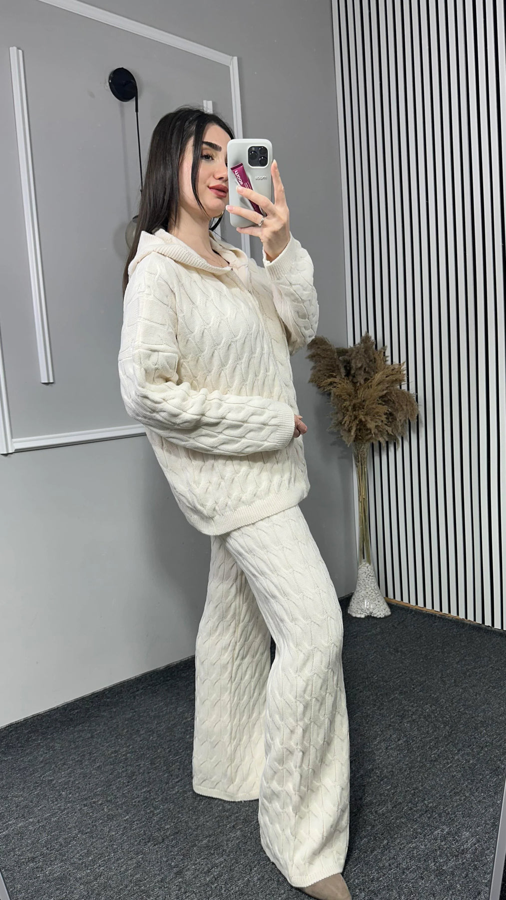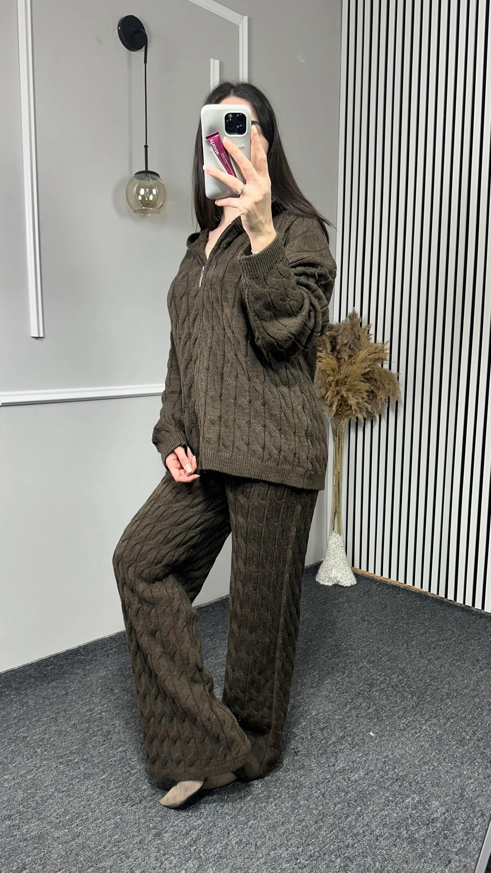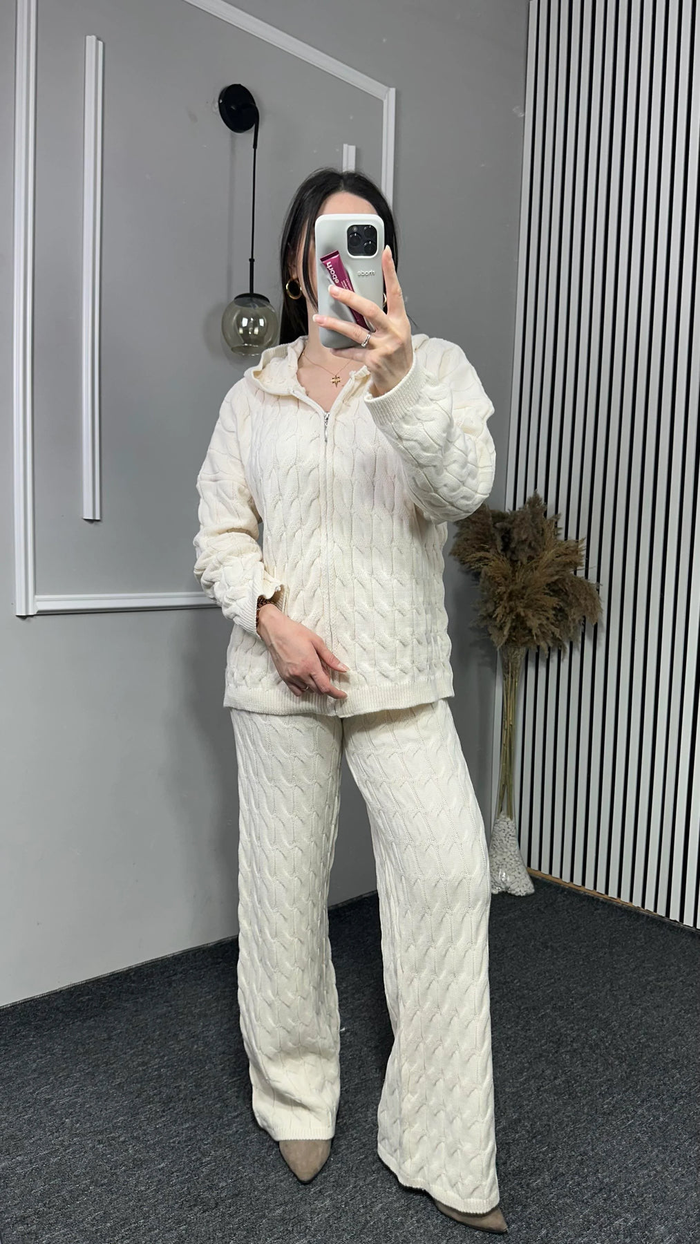 Kapşonlu Desenli Triko Takım
