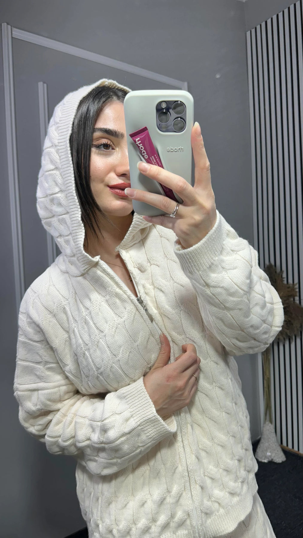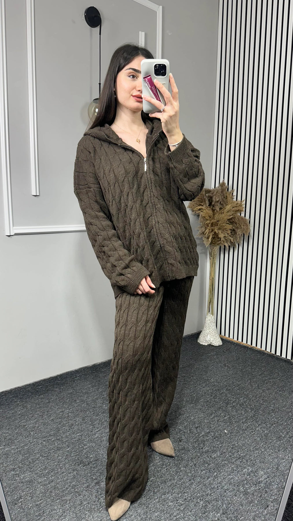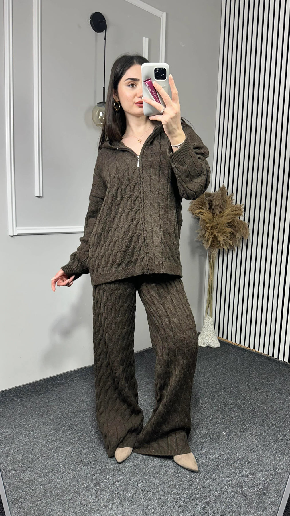 Kapşonlu Desenli Triko Takım