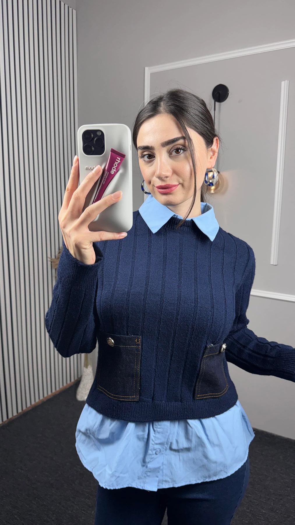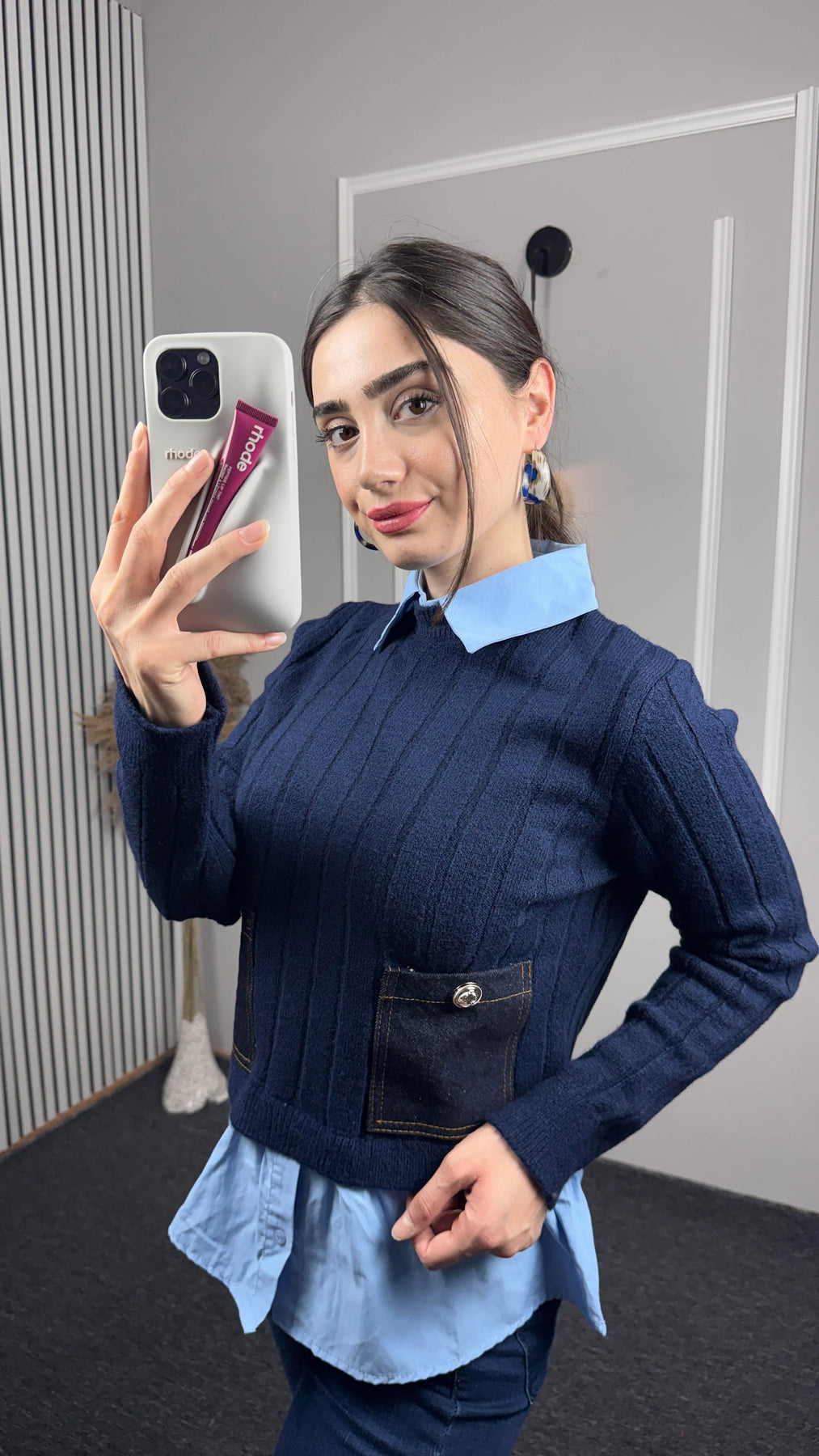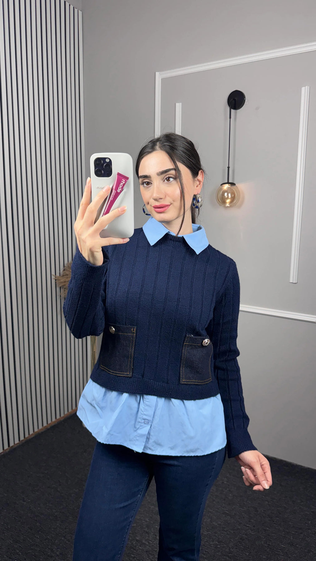 Gömlek Yaka Detaylı Cepli Triko
