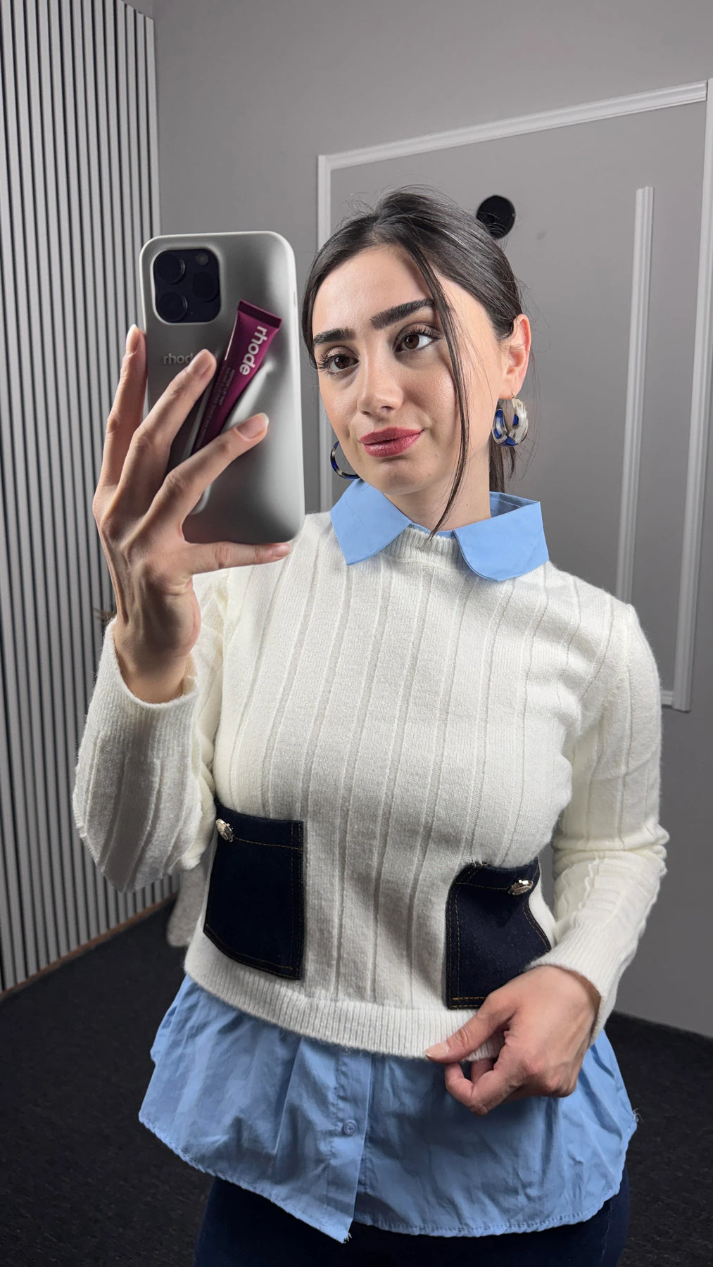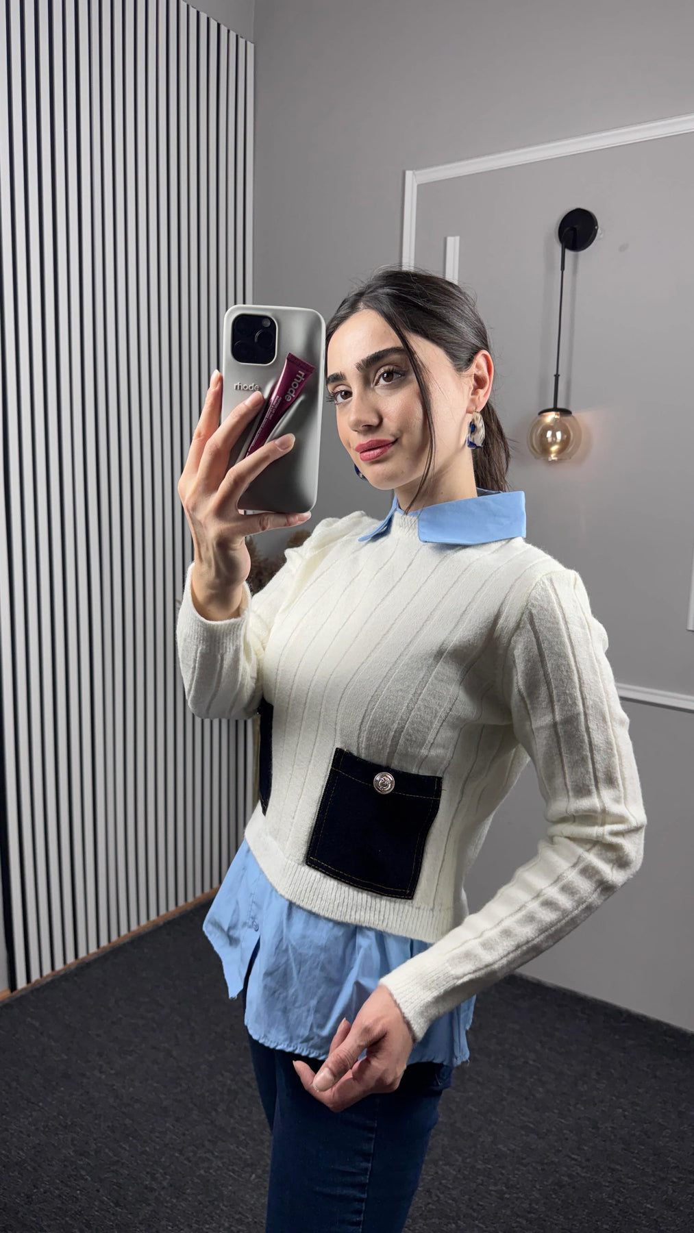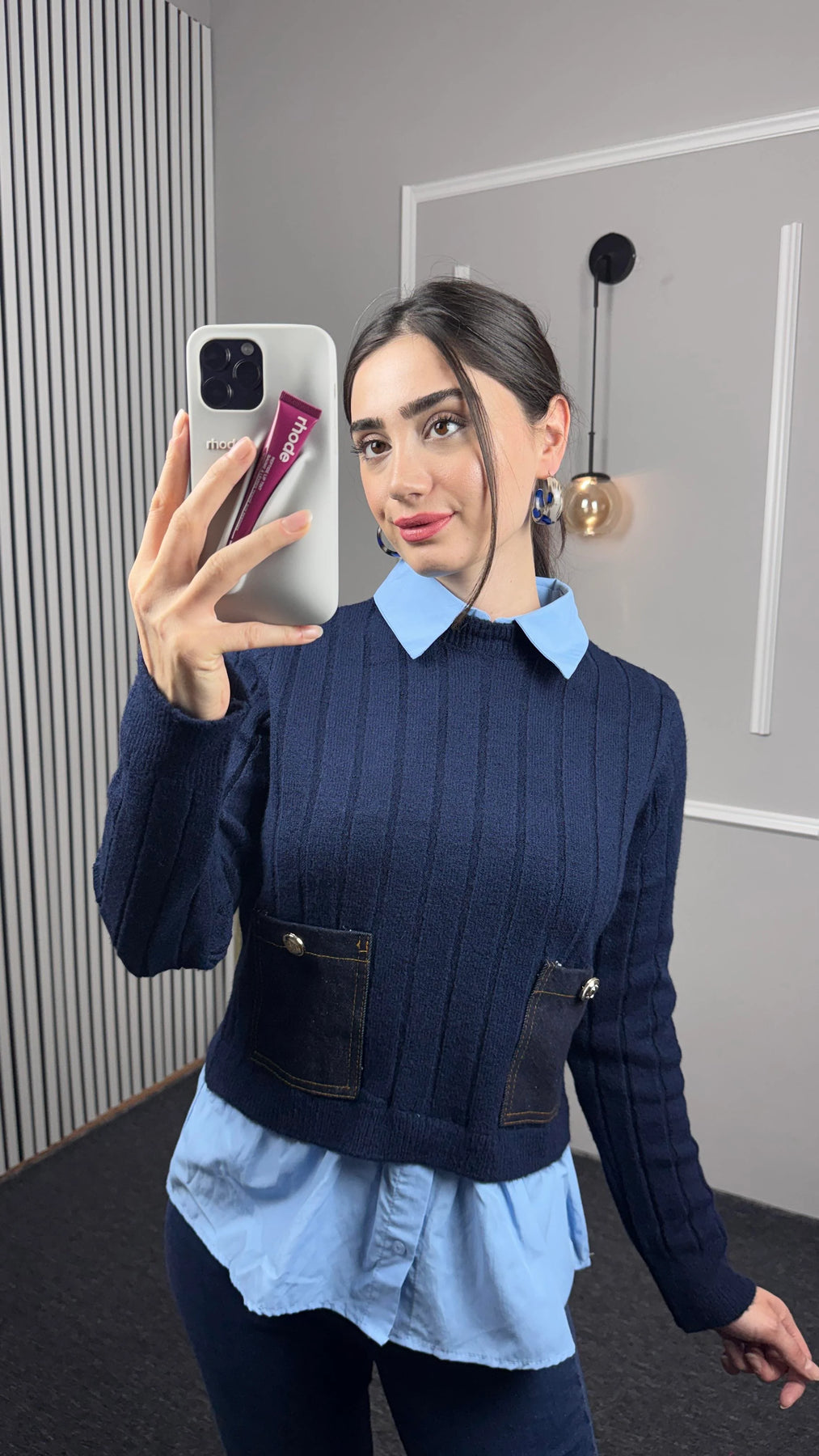 Gömlek Yaka Detaylı Cepli Triko